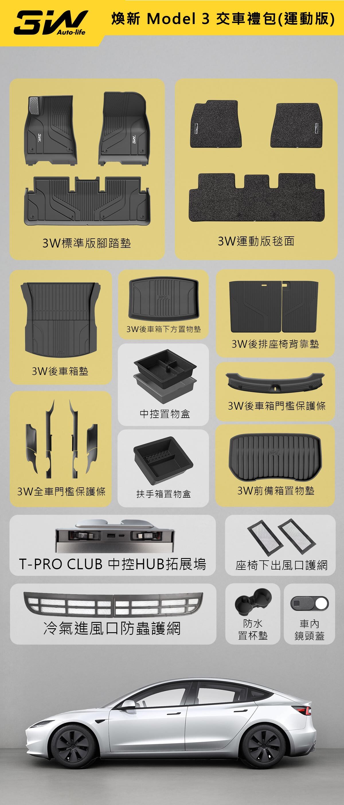 3W 果爹粉絲專屬禮包 - 運動版hub|Model 3 (2024)